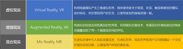 沉浸式技术包含虚拟现实VR、增强现实AR、混合现实MR三类。