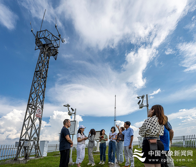 向采访团介绍气象观测相关情况。图/颜家蔚