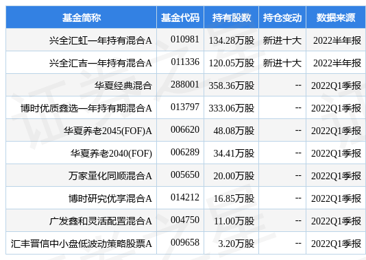 其中持有数量最多的基金为兴全汇虹一年持有混合A,目前规模为26.76亿元,最新净值1.0953(8月4日),较上一交易日下跌0.12%,近一年上涨0.22%。该基金现任基金经理为陈红。