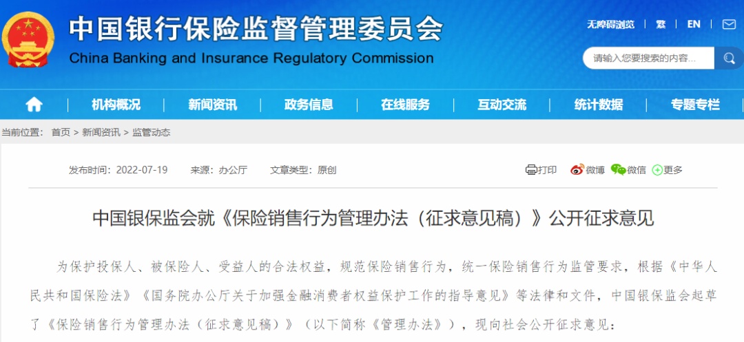 近日,银保监会下发了《保险销售行为管理办法(征求意见稿)》,向社会公开征求意见。就在今年4月,银保监会人身险部向各保险公司下发了《人身保险销售行为管理办法(征求意见稿)》,在业内征求意见。两份文件虽然都只是征求意见稿,但可以看出对于保险销售行为的监管越来越规范和严格。