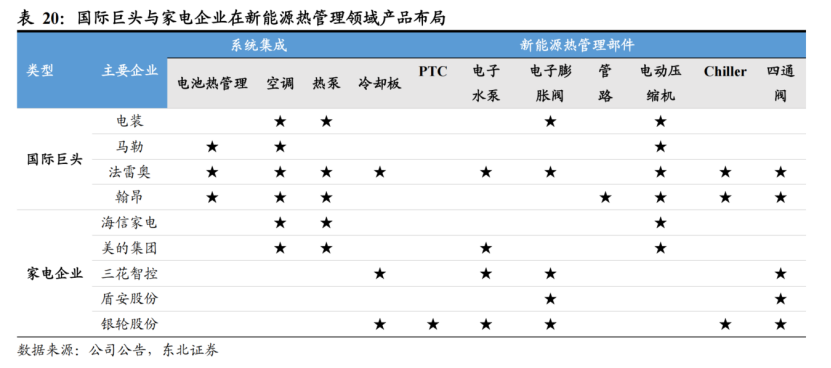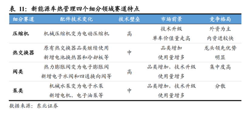 陈玉卢表示,随着新能源车渗透率提高和热管理系统巨大变化,四大类核心零部件迎来高景气:空调压缩机、阀类、换热器类和泵类。