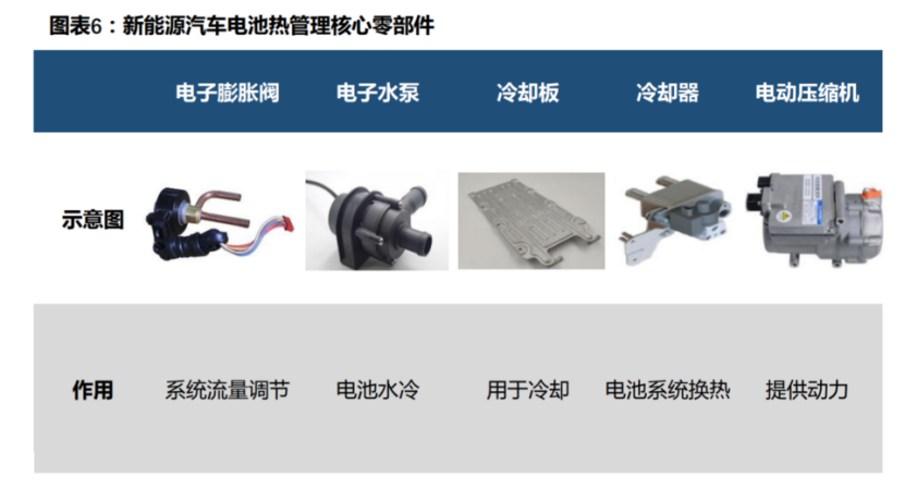据悉,三花智控主营业务为汽车热管理和制冷业务。资料显示,新能源汽车热管理核心零部件主要为电子膨胀阀、电子水泵、冷却板、冷却器和电动压缩机。