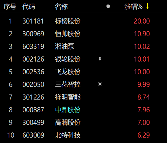 财联社7月27日讯(编辑 笠晨 记者 曾楚楚)热管理概念股标榜股份、恒帅股份、湘油泵(603319)、银轮股份(002126)和飞龙股份纷纷涨停。总市值超1100亿元的龙头股三花智控(002050)同样涨停并创下历史新高,自4月25日低点至今累计最大涨幅高达140.8%。