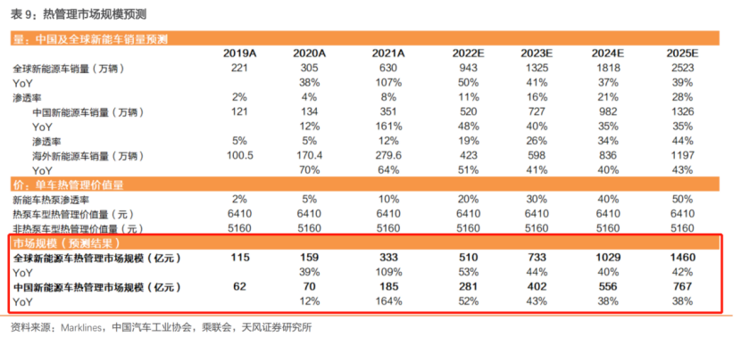 天风证券孙谦等人在5月18日发布的研报中表示,根据测算,至2025年,全球新能源车热管理市场规模将达1460亿元,其中国内市场为767亿元。